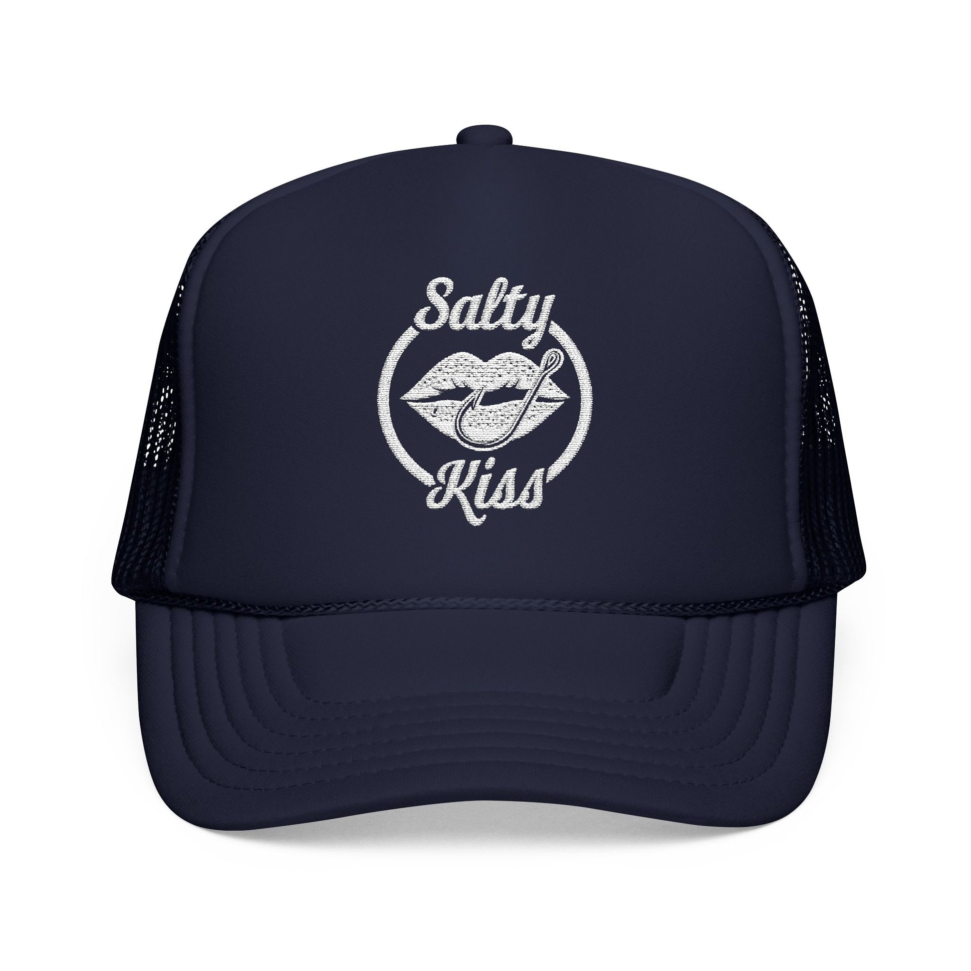 "Salty Kiss" Embroidered Trucker Hat - white logo