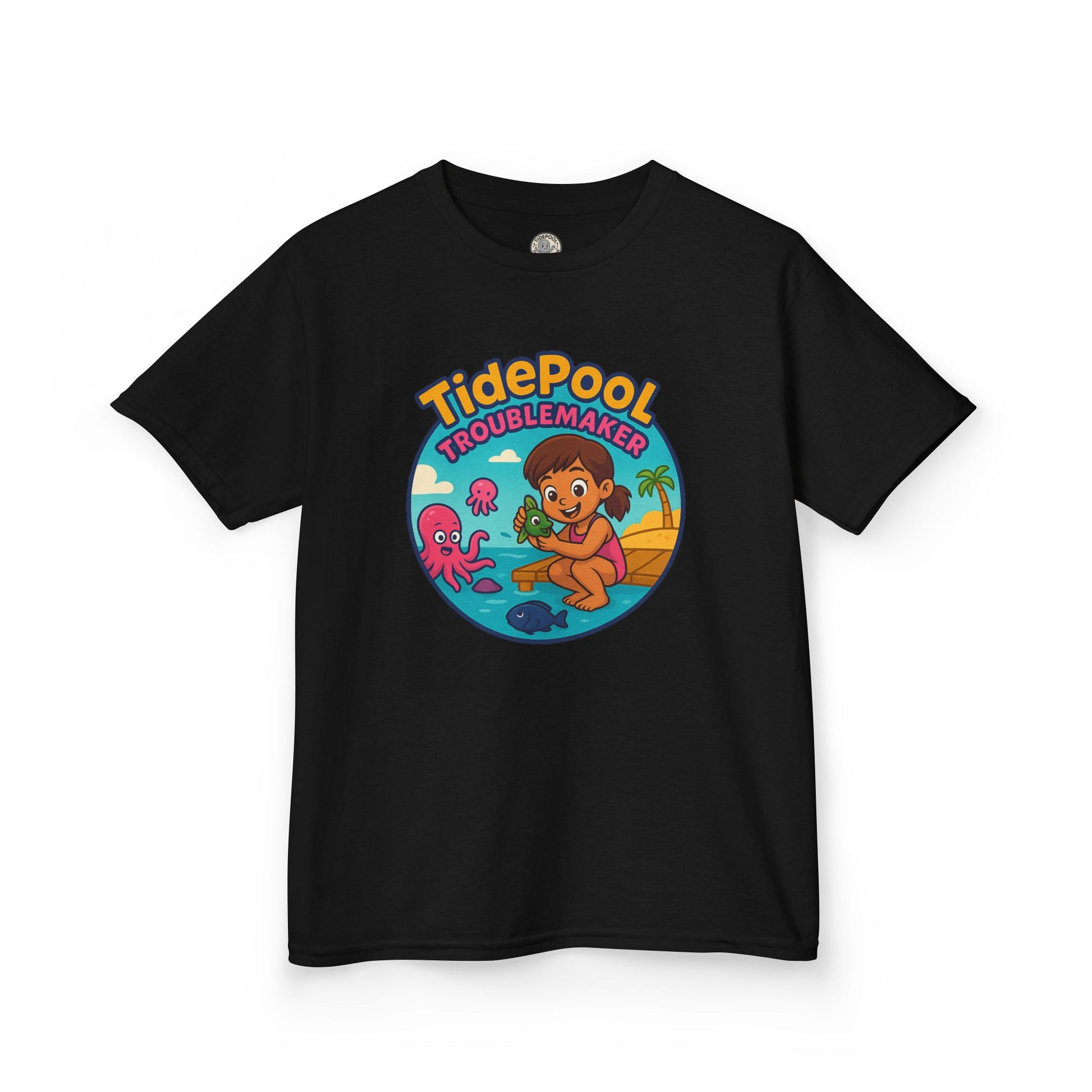 TIDEPOOL TROUBLEMAKER is made for girls who love the ocean and aren’t afraid to make a splash. Featuring a fun, fearless seaside character and bright coastal colors, this design celebrates curiosity, confidence, and a little mischief mixed with a whole lot of heart. Perfect for school days, playtime, beach adventures, and everyday fun, it’s soft, comfy, and easy to wear. Made for girls who explore boldly, laugh loudly, and proudly claim their spot as a true TIDEPOOL TROUBLEMAKER. 🌊💖